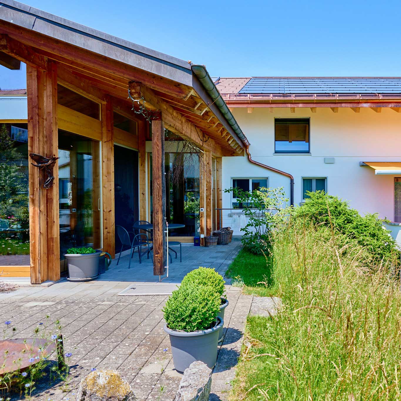 Das Haus des Mathematik-Dozenten Hanspeter Gerber hat Geschichte. Es entstand im Jahr 1953 als Massivhaus mit Doppelschalen-Mauerwerk, wurde schon des Öfteren umgebaut und immer weiter optimiert. Der letzte Umbau fand 2012 bis 2013 statt, als sich Hanspeter und seine Partnerin Angèle Kovács, getreu dem Motto «Wenn, dann richtig!», zu einer energetischen Komplettsanierung entschlossen: der Installation von Warmwasserpanels, einer Solaranlage und einer Erdwärmeheizung.