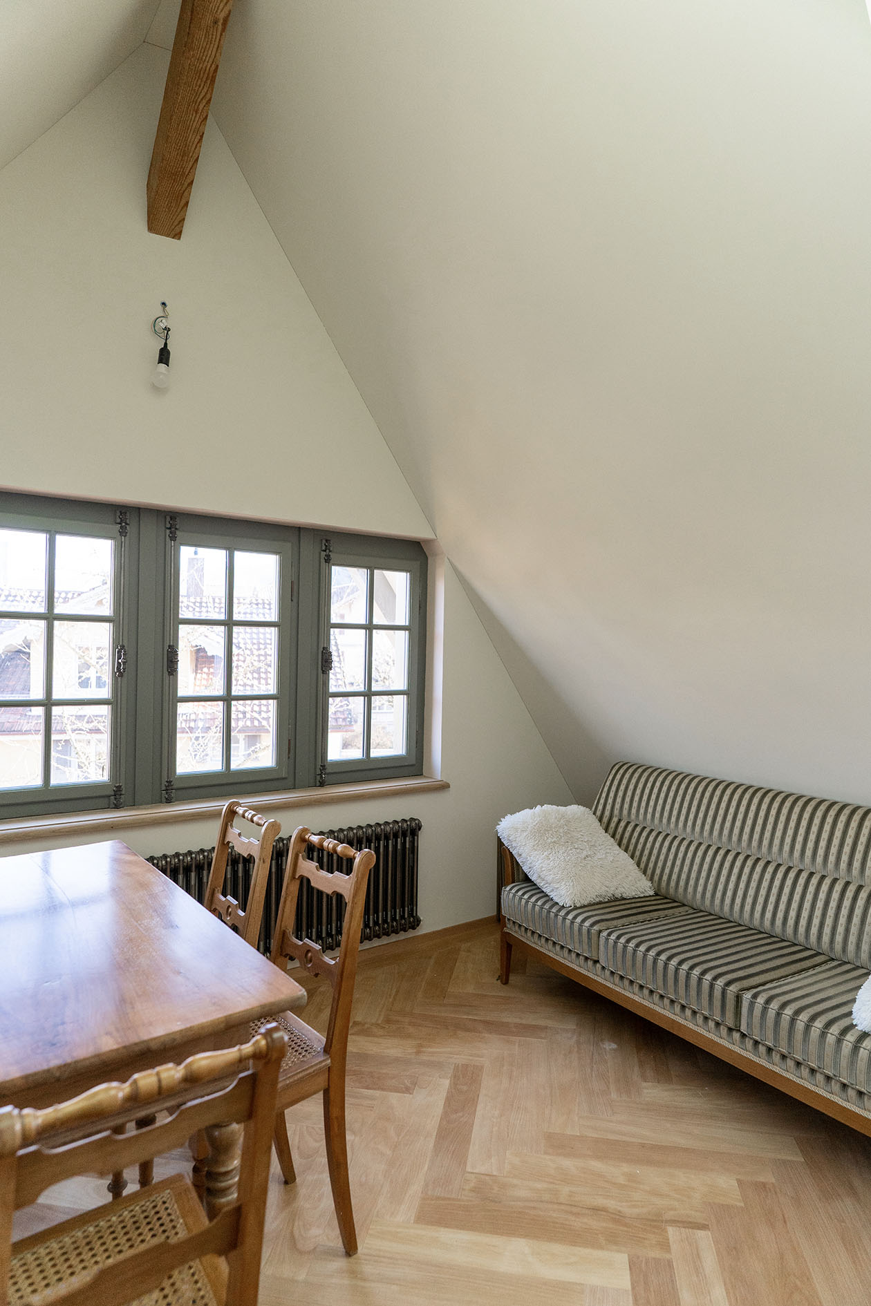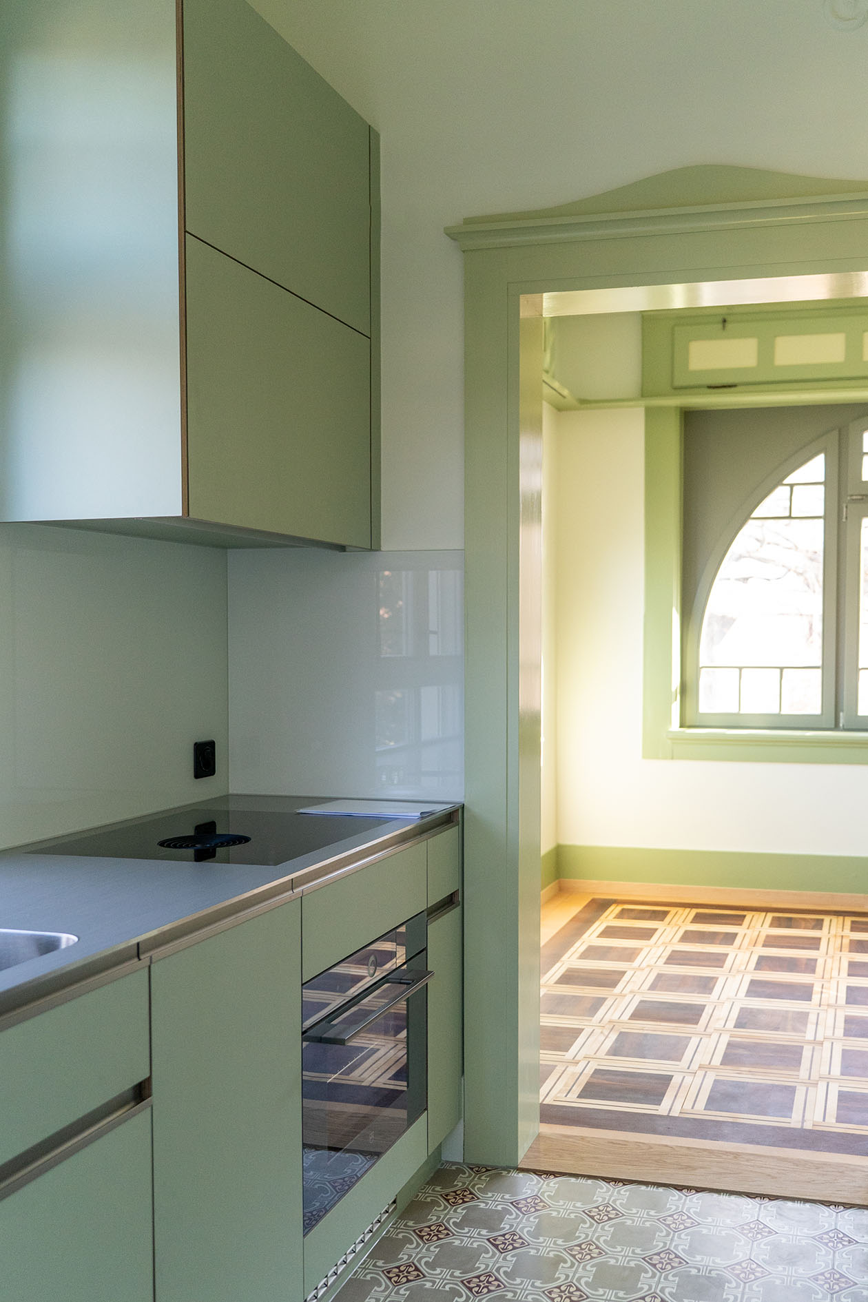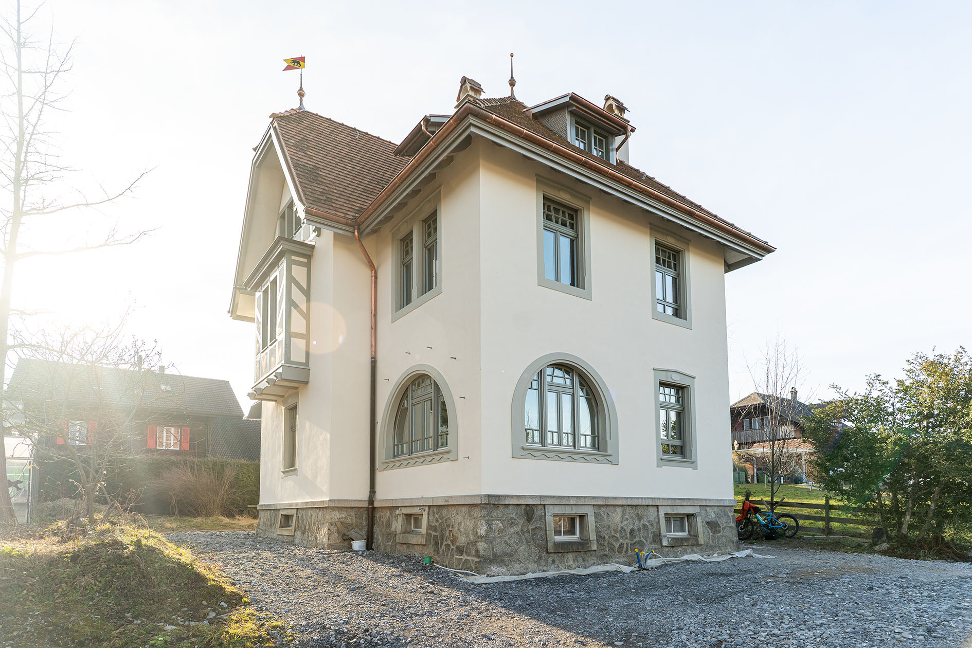 Mit ihrem Flair für altehrwürdige Charakterhäuser fanden Therese Bärtschi und Adrian Marti mit der Villa Beata in Spiez ein Traumobjekt. Ihre Vision war klar: Die Jugendstilvilla Beata in Spiez, eine «alte Dame» aus dem Jahr 1905, sollte zu neuem Leben erweckt und ihre historische Substanz bewahrt werden. Frühzeitig bezogen sie die Denkmalpflege und die Gemeinde in ihre Planung ein, um ihre Wünsche auf eine solide Basis zu stellen. Das Paar wollte die Villa nicht nur erhalten, sondern ihr auch eine neue Bestimmung geben. Für die künftige Nutzung sollte das Haus in kleinere Wohneinheiten unterteilt werden. Eine Herausforderung bestand darin, die richtigen Handwerker zu finden – Fachleute, die ihr Handwerk verstehen und zugleich die Erfahrung und das Interesse für den sorgfältigen Umgang mit historischer Bausubstanz mitbringen. Die Villa Beata wurde mit fachmännischem Sachverstand aller Beteiligten sorgfältig restauriert. Moderne Funktionalität in Küche und Bad ergänzt die historische Substanz.