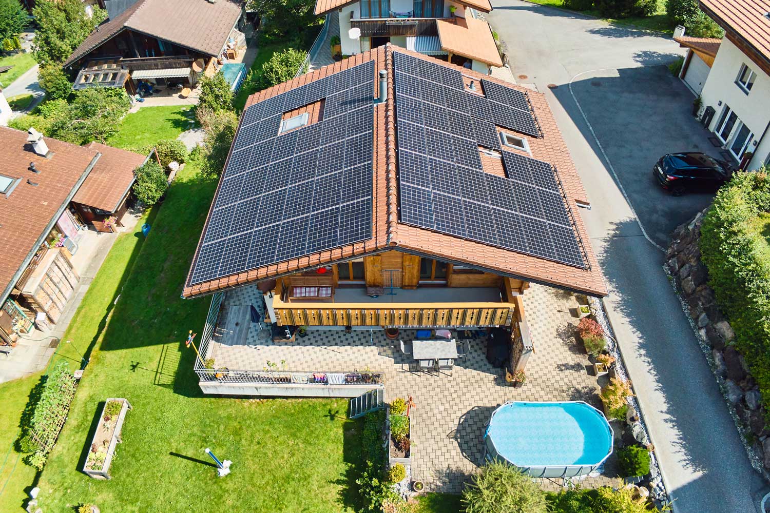 Nach intensiver Planungsphase, die Allenbach Holzbau und Solartechnik autonom mit allen involvierten Handwerkern umsetzte, begann am 10. Februar 2021 bereits der Umbau. Nach nur 1 ½ Wochen Umbauphase waren die Arbeiten bereits abgeschlossen. Damit ist die Solaranlage in Kandergrund nicht nur die im Winter 2021 am schnellsten installierte, sondern auch eine der effektivsten. Denn sie versorgt, dank der angepassten Elektroinstallation, gleich zwei benachbarte Eigenheime mit Strom.