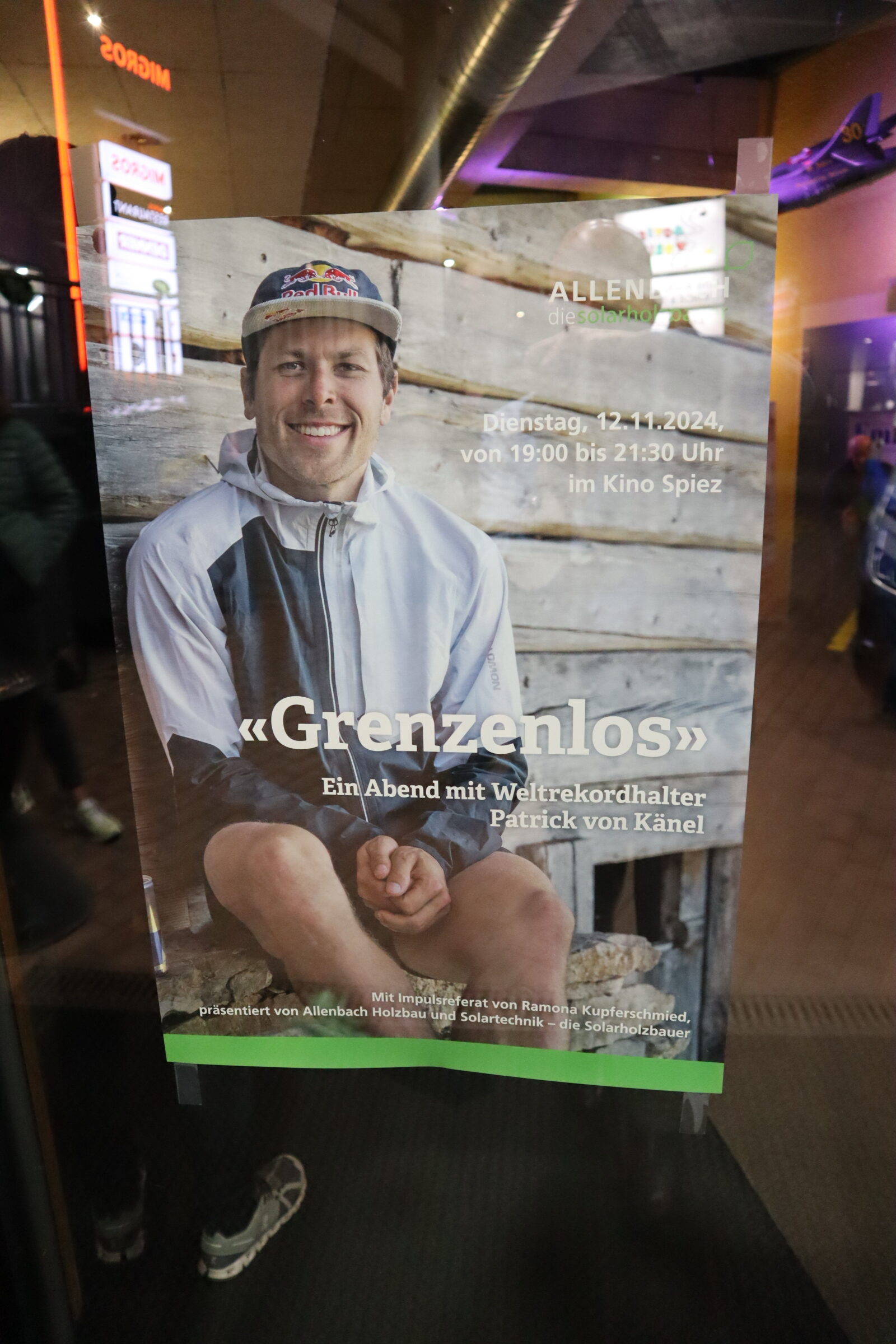 Am 12. November 2024 öffnete das Kino Spiez seine Türen für einen besonderen Anlass: Der Event «Grenzenlos» zog rund 120 interessierte Gäste an, die sich auf ein einzigartiges Programm freuten. Im Mittelpunkt stand der spannende Film von Patrick von Känel, in dem er seine Abenteuer als Weltrekord-Gleitschirmpilot schildert und seine Faszination für erneuerbare Energien und Nachhaltigkeit zeigt. Dieser Film wurde exklusiv am Anlass präsentiert und ist nun auch auf unserer Webseite zu sehen.